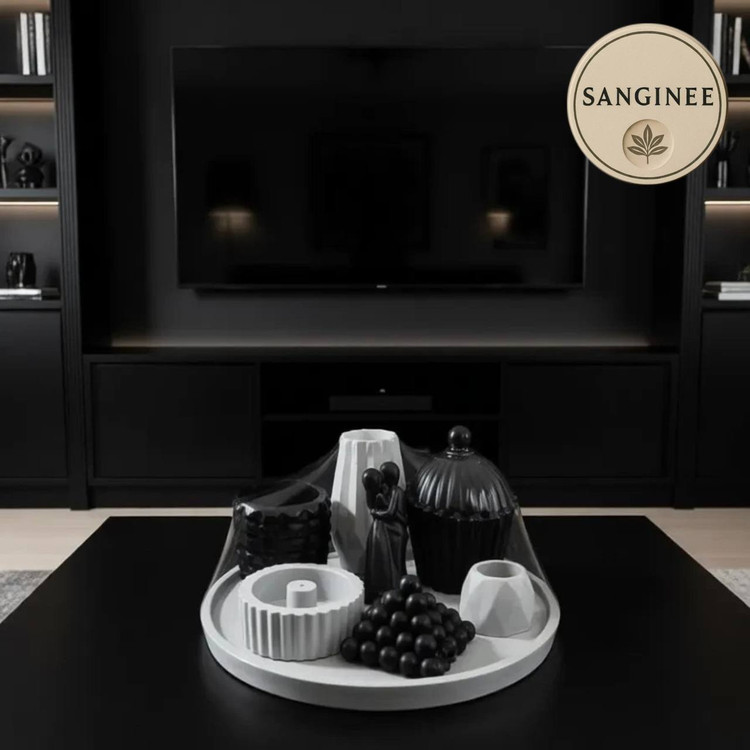 ست دکوراتیو مشکی و طوسی از جنس سنگ طبیعی شامل گلدان در سه سایز، جاعودی روبیک، مجسمه خاص، سینی و قندان. طراحی شیک و متفاوت این ست، گزینهای ایدهآل برای دکوراسیون مدرن و مینیمال، و مناسب برای ایجاد جلوه لوکس در منزل یا هدیهای خاص و منحصر به فرد است.